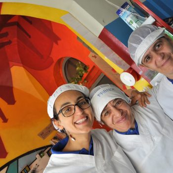 Alunni e disabili disegnano pannelli nel bar del LiceoAlunni e disabili disegnano pannelli nel bar del Liceo